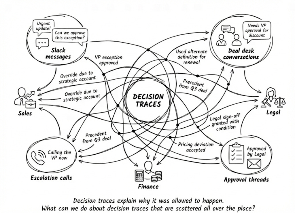 It needs tracking decisions that live in slack threads, Deal Conversations, Escalation calls and people’s heads.